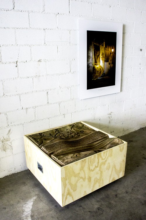 Molde de latex 290x410cm plegado y encapsulado en cajón de contrachapado y tapa de cristal